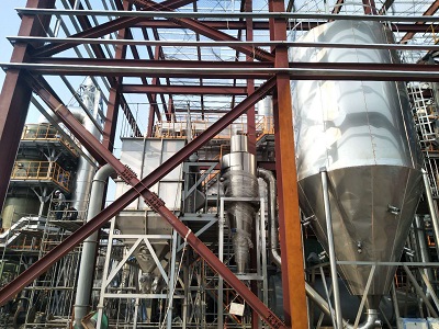 該項目選用噴霧幹燥機,用於氯化鋅的一次脫水幹燥。氯化鋅溶液由氧化鋅與鹽酸反應而得,經噴霧幹燥機噴幹,得到含固率5%以內的氯化鋅粉末,密度約為1.38。氯化鋅噴霧幹燥機係統主要由加熱器、料液泵、噴霧幹燥機主機、旋風分離器、水膜除塵器、引風機以及控製係統組成。