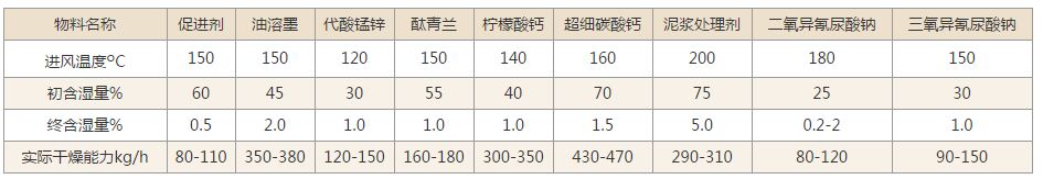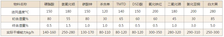 注:1.水分蒸發量是以進風溫度為180oC,出風溫度為80oC 時每小時蒸發的水份,